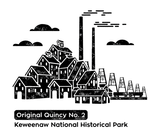 Faux letter press version of the original Quincy #2 shaft in Hancock, Michigan.