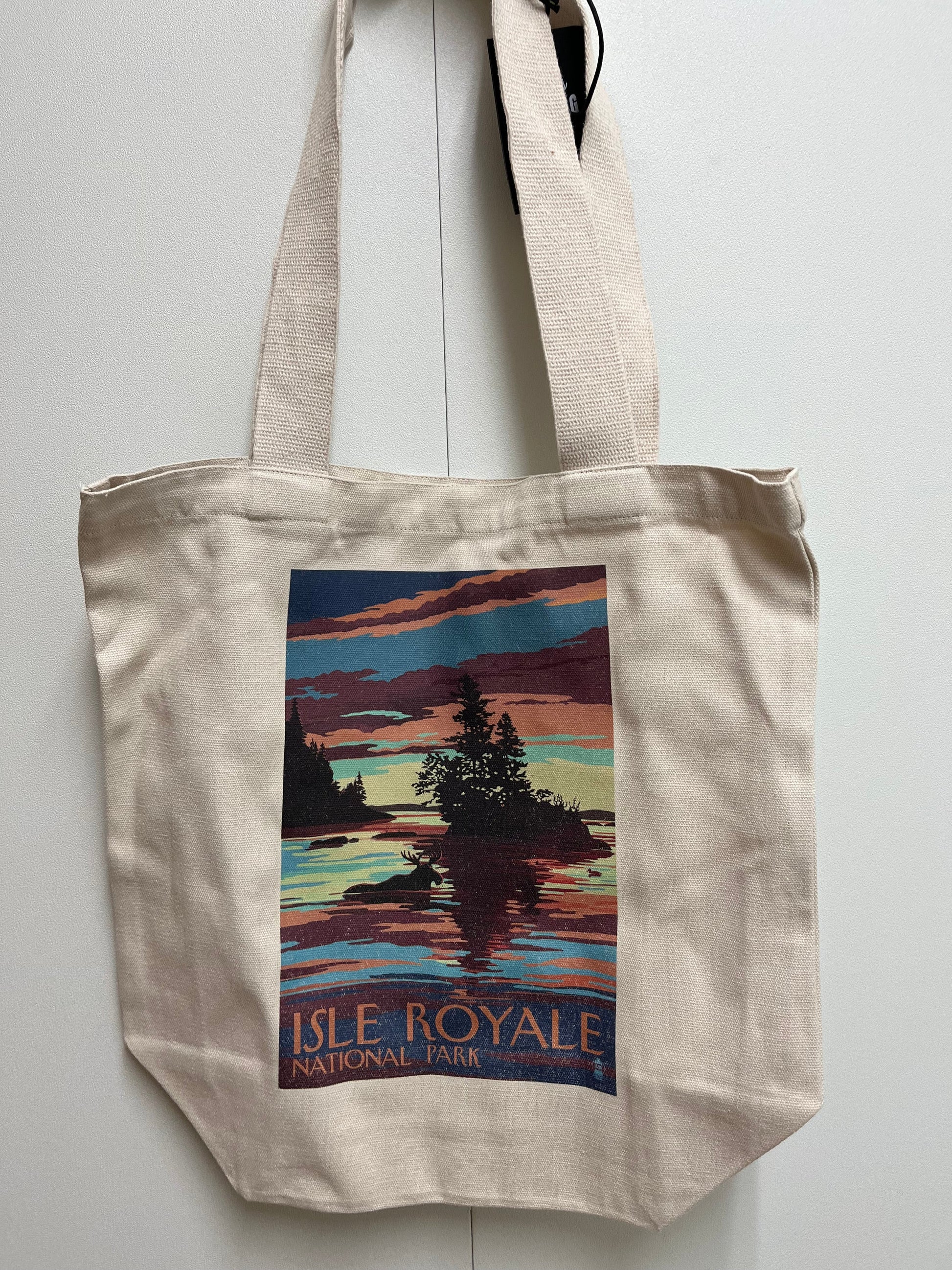 Wolf and pup at sunset on a canvas tote bag. Great for carrying books!